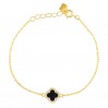 Bransoletka srebrna (pozłacana) koniczyna marokańska z czarnym kamieniem wewnątrz zdobiona po obwodzie niewielkimi cyrkoniami. Bransoletka ma regulowaną długość w zakresie podanym poniżej. Wysyłana jest w ozdobnym, prezentowym etui. Wspaniały prezent na każdą okazję dla ukochanej osoby.