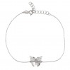 Bransoletka srebrna z motylem, którego skrzydełka zdobione są przeźroczystymi cyrkoniami. Obwód bransoletki jest regulowany w zakresie od 18.0 do 20.5 cm. Wysyłana jest w ozdobnym, prezentowym etui. Wspaniały prezent na każdą okazję dla ukochanej osoby.