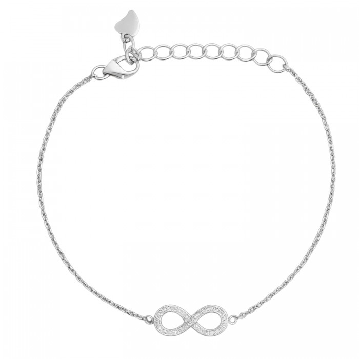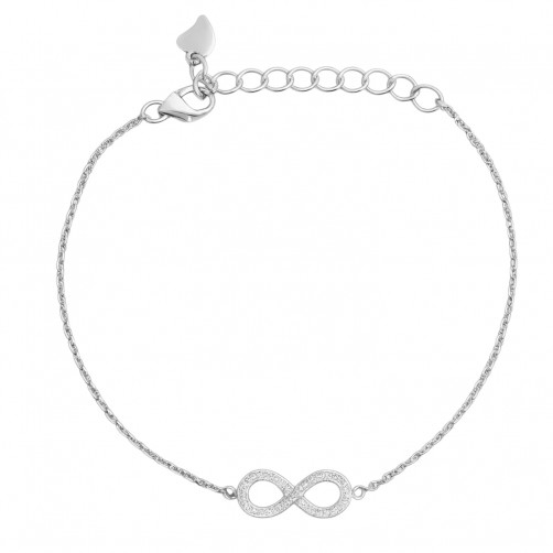 Bransoletka srebrna nieskończoności z cyrkoniami. Obwód bransoletki jest regulowany w zakresie od 17.0 do 21.0 cm. Wysyłana jest w ozdobnym, prezentowym etui. Wspaniały prezent na każdą okazję dla ukochanej osoby.