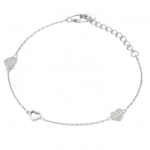 Bransoletka srebrna z trzema sercami, dwa z nich zdobione są cyrkoniami, a jedno to sama otoczka w kształcie serca. Bransoletka jest regulowana w zakresie od 17.0 do 20.0 cm. Wysyłana jest w ozdobnym, prezentowym etui. Wspaniały prezent na każdą okazję dla ukochanej osoby.