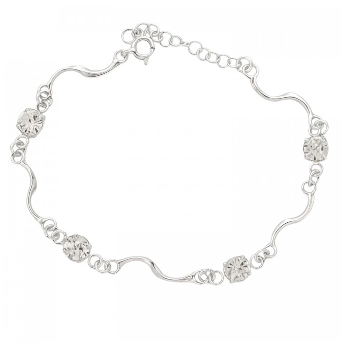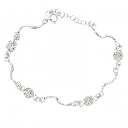Bransoletka srebrna zdobiona pięcioma przeźroczystymi cyrkoniami. Obwód regulowany od 18.0 do 21.0 cm. Wysyłana jest w ozdobnym, prezentowym etui. Wspaniały prezent na każdą okazję dla ukochanej osoby.