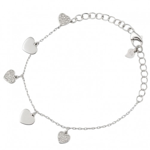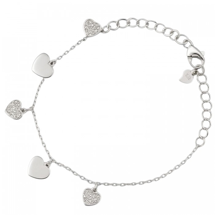 Bransoletka srebrna z kilkoma sercami, część jest z cyrkoniami. Obwód bransoletki jest regulowany w zakresie od 16.0 do 19.0 cm. Wysyłana jest w ozdobnym, prezentowym etui. Wspaniały prezent na każdą okazję dla ukochanej osoby.