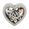 Przedstawiamy Państwu przepiękną zawieszkę charms pasująca do większości bransoletek typu Pandora. Charms ma kształt serca, a obie jego strony są jednakowe. W środku jest napis I LOVE YOU, a na około niego umieszczone są przeźroczyste cyrkonie. Charms poprzez drobiazgowe i delikatne wykonanie nada uroku każdej bransoletce. Wisior do wysyłki zapakowany jest w ozdobne etui. Zapraszamy do zakupu.