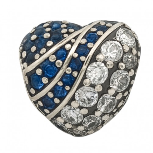 Przedstawiamy Państwu cudowną zawieszkę charms pasująca do większości bransoletek typu Pandora. Element zrobiony jest w całości ze srebra próby 925. Zawieszka to przepięknie dwustronnie wykonane serduszko zdobione małymi cyrkoniami w trzech kolorach: przeźroczystym, granatowym i jasnym niebieskim. Prześliczna całość, delikatne wykończenie, precyzyjne wykonanie, to dodatkowe atuty tej zawieszki. Charms do wysyłki zapakowany jest w ozdobne etui. Zapraszamy do zakupu.