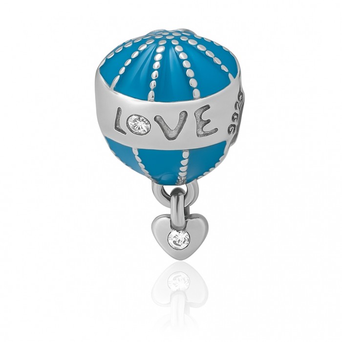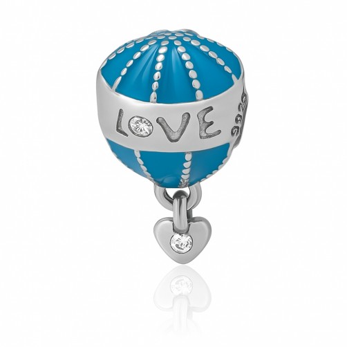 Srebrna zawieszka charms pasująca do większości bransoletek modułowych, również do produktów znanych w Polsce firm. Charms niebieski balon z napisem LOVE oraz umieszczonym pod nim serduszkiem z małą cyrkonią. Przedmiot pakowany jest w ozdobny woreczek, który ułatwi jego przechowywanie.