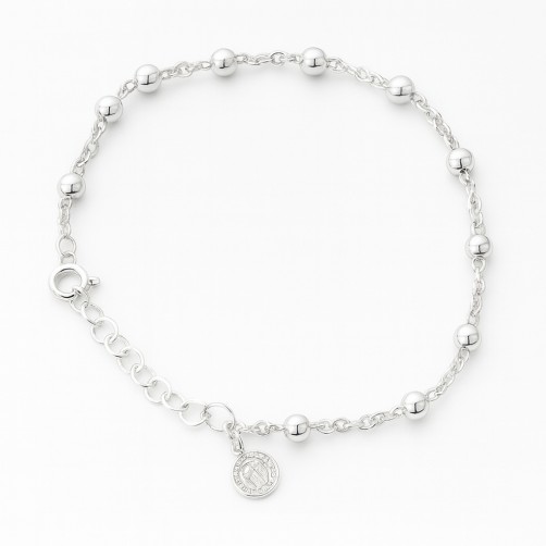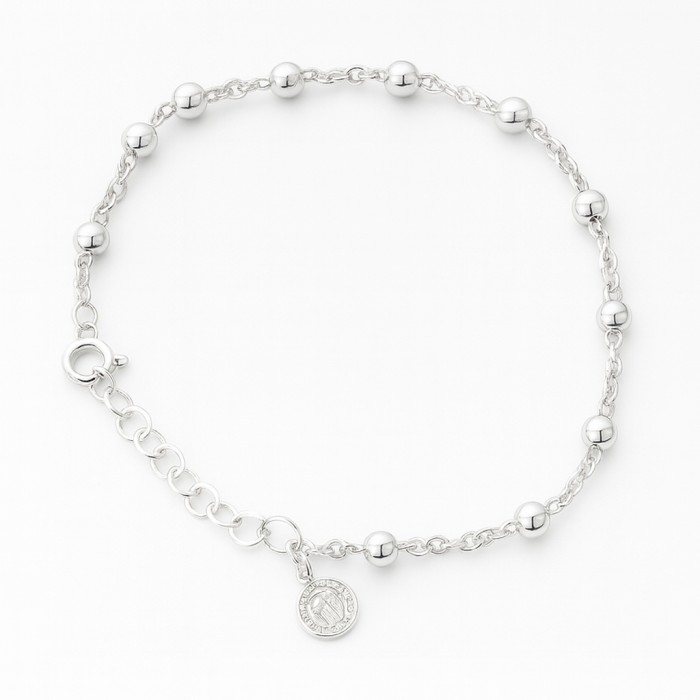 Bardzo ładna, srebrna dziesiątka różańca, idealnie nadaje się jako prezent na komunię, jak również idealny upominek dla babć. Dziesiątka stanowi również bransoletkę, której długość jest regulowana. Wysyłana jest w ozdobnej torebeczce.