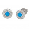 Kolczyki srebrne okrągłe ozdobione przeźroczystymi cyrkoniami po obwodzie oraz niebieskim opalem na środku. Srebro użyte do ich wykonania jest próby 925. Kolczyki posiadają zapięcie typu "wkrętka". Zapakowane i wysyłane w ozdobnej torebeczce, dzięki czemu stanowią idealny prezent.