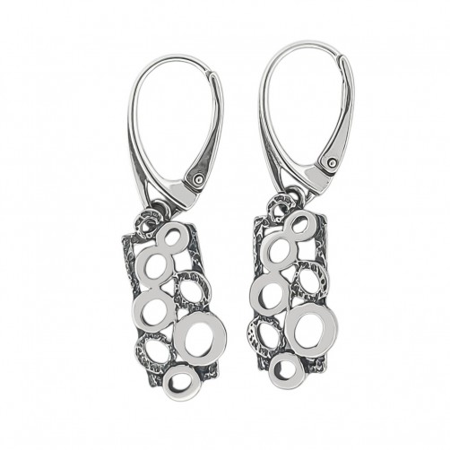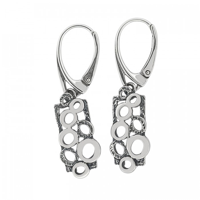 Kolczyki srebrne, prostokątne zdobione kilkoma owalami, z których część jest oksydowana, a część w połysku. Kolczyki wykonane ze srebra próby 925. Serdecznie zapraszamy do zakupu.