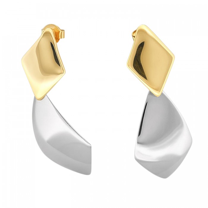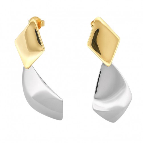 Kolczyki srebrne składające się z dwóch elementów, z których dolny jest ruchomy. Do górnej, pozłacanej części przymocowane jest zapięcie typu wkrętka. Serdecznie zapraszamy do zakupu.