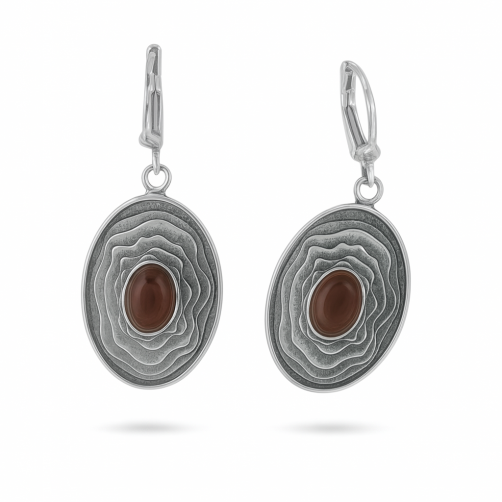 Kolczyki srebrne z bursztynem w brązowym kolorze, ręcznie wykonane ze srebra najwyższej próby 925. Bursztyn jest szlifowany i ma kształt owalny. Wspaniały prezent na każdą okazję dla ukochanej osoby.
