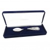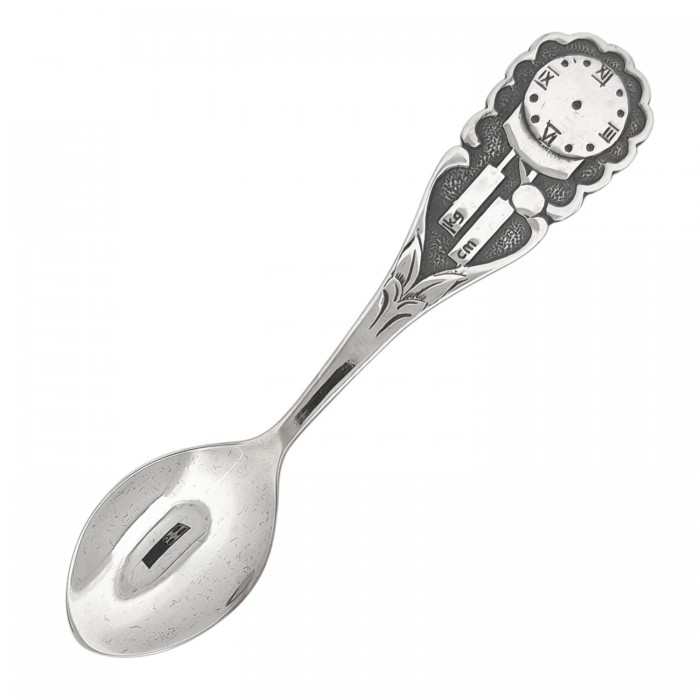 Łyżeczka wykonana ze srebra próby 925. W tylnej części łyżeczki jest blat zegara, gdzie można wygrawerować godzinę urodzin, poniżej wagę (kg) i wzrost (cm). Łyżeczką można karmić. Zapakowana jest w ozdobne, zamszowe etui koloru granatowego. Wspaniały prezent na chrzest. Serdecznie zapraszamy do zakupu.