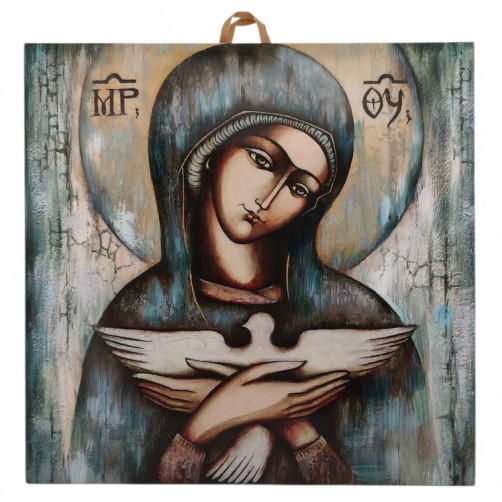 Ikona, obrazek Jezus Chrystus na płytce ceramicznej autorstwa Ireny Kwaśniewskiej - artystka, plastyczka, malarka.