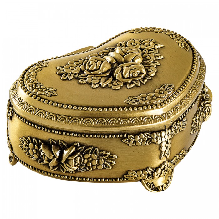 Gustowna, niewielkich rozmiarów szkatułka na biżuterię. Posiada kształt serca i została ozdobiona pięknym, kwiatowym wzorem. Środek jest w ciemnym kolorze, podzielony na dwie części, jedna z nich jest na pierścionki. Świetnie sprawdzi się jako upominek dla kobiety z okazji urodzin bądź imienin.