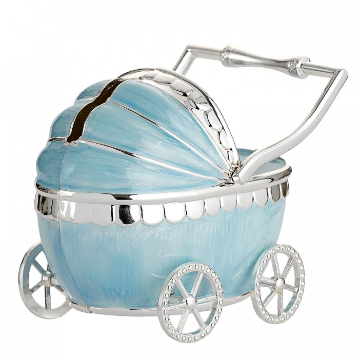 Bardzo fajna skarbonka w kształcie wózeczka z ruchomymi kołami, pokryta niebieską masą plastyczną, perłową. Skarbonka na chrzest bądź roczek, wspaniały i oryginalny prezent dla chłopczyka. Możesz wręczyć ją zamiast białej koperty. Opcjonalnie oferujemy również możliwość zamówienia blaszki z grawerem, na pamiątkę. Serdecznie zapraszamy do zakupu.
