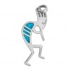 Srebrny wisiorek Kokopelli z niebieskim opalem to wyjątkowa zawieszka wykonana ze srebra próby 925, inspirowana symboliką kultury rdzennych mieszkańców Ameryki. Postać Kokopelli jest symbolem radości, muzyki, płodności oraz dobrej energii.