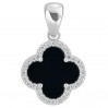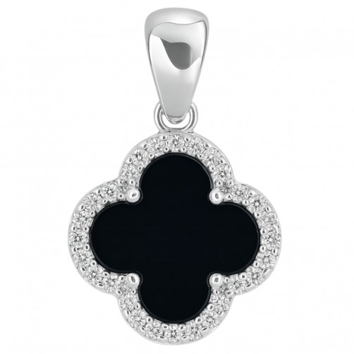 Przedstawiamy Państwu srebrny wisiorek koniczyna marokańska najwyższej próby 925, wypełnionego czarnym kamieniem, którego otaczają przeźroczyste cyrkonie. Zawieszka zapakowana i wysyłana jest w ozdobnej torebeczce. Wspaniały prezent na każdą okazję dla ukochanej osoby.