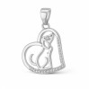 Oferujemy Państwu srebrny wisiorek w kształcie serca z umieszczonym wewnątrz wizerunkiem pieska. Dolna część obwodu wisiorka oraz ślepie pieska są ozdobione niewielkimi, przeźroczystymi cyrkoniami. Zawieszka wysyłana jest w ozdobnej torebeczce, dzięki czemu stanowią idealny prezent.